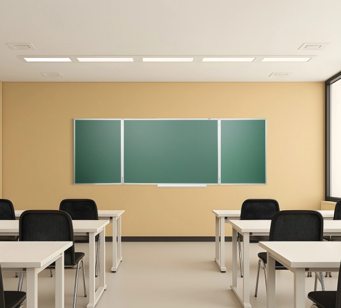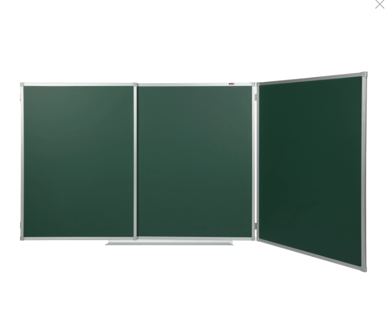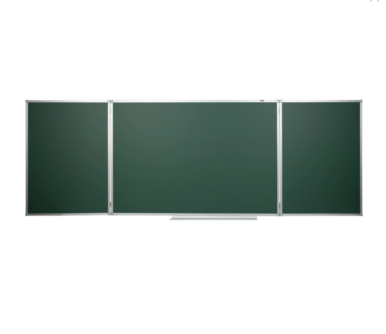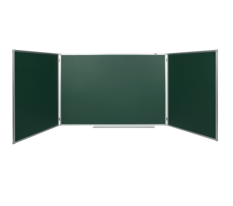 ДОСКА ТРЕХСЕКЦИОННАЯ МАГНИТНО-МЕЛОВАЯ ИМЕЕТ 2 СТВОРКИ — 5 РАБОЧИХ ПОВЕРХНОСТЕЙ. РАЗМЕР ДОСКИ В ОТКРЫТОМ СОСТОЯНИИ — 300×100 СМ. РАМА ИЗ АЛЮМИНИЕВОГО АНОДИРОВАННОГО ПРОФИЛЯ, СКРЕПЛЕННОГО ПЛАСТИКОВЫМИ УГОЛКАМИ. ДОСКА ПРЕДНАЗНАЧЕНА ДЛЯ НАНЕСЕНИЯ ИНФОРМАЦИИ МЕЛОМ.