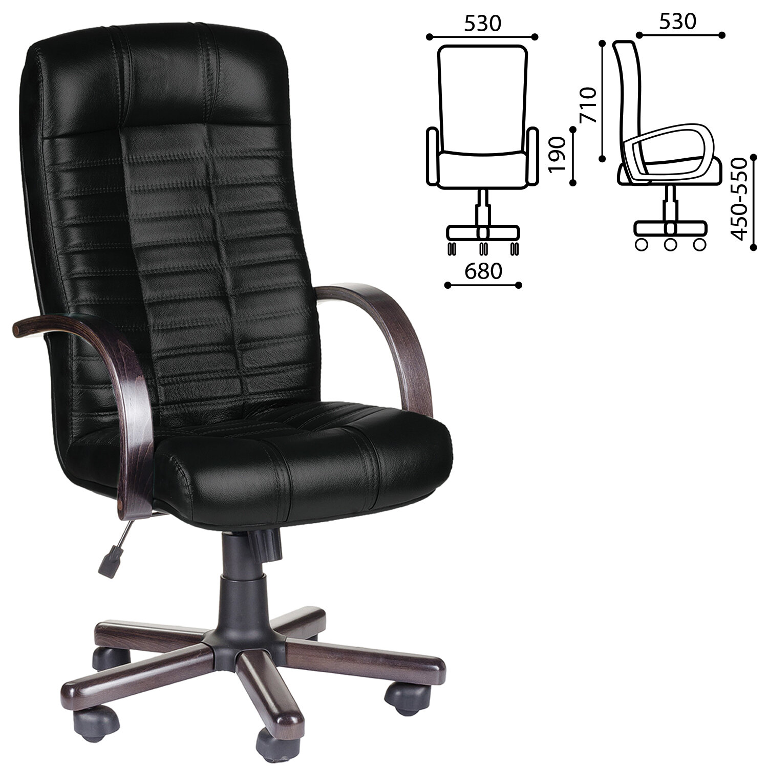 Кресло из натуральной кожи "Атлант-экстра", дерево (орех), монолитный каркас, черное