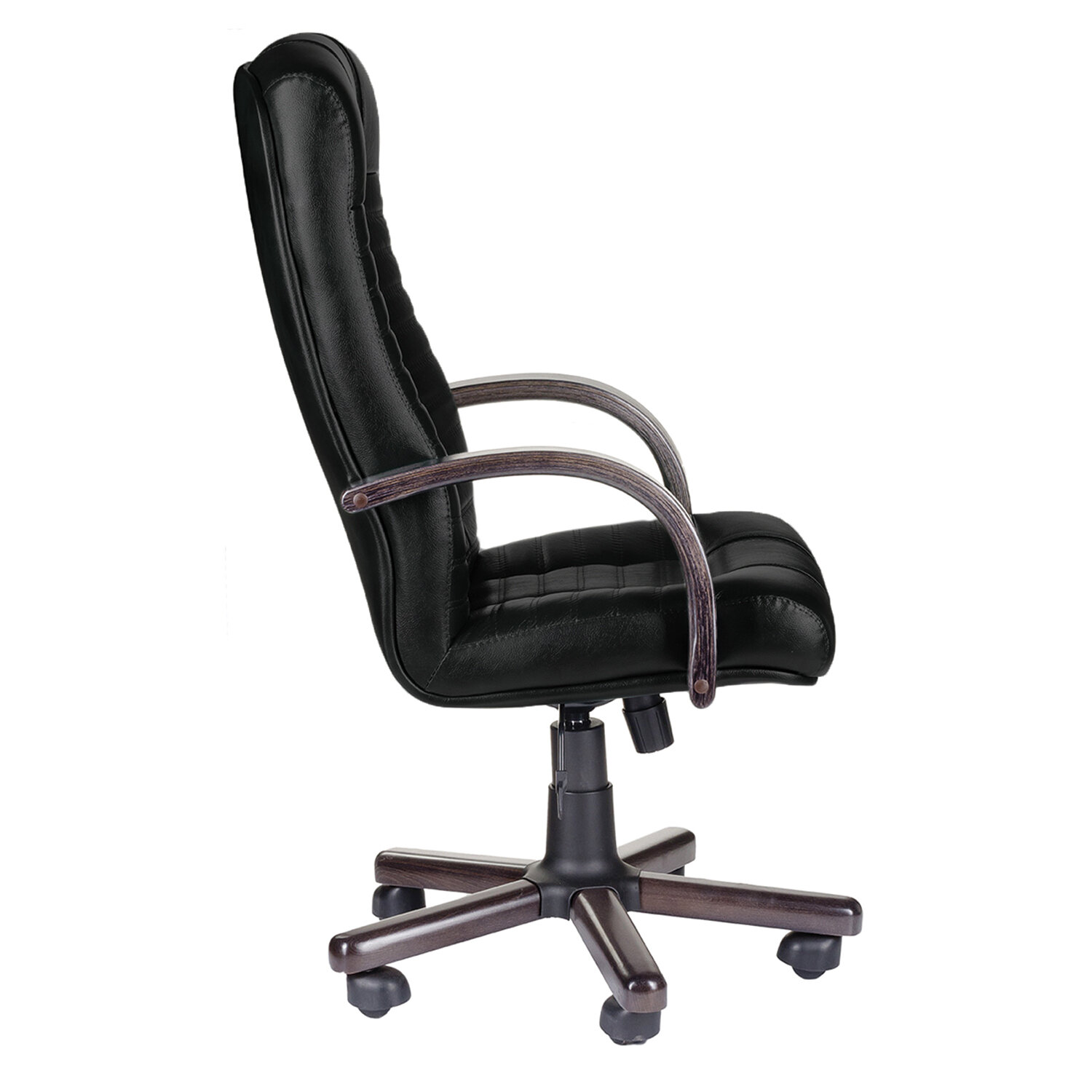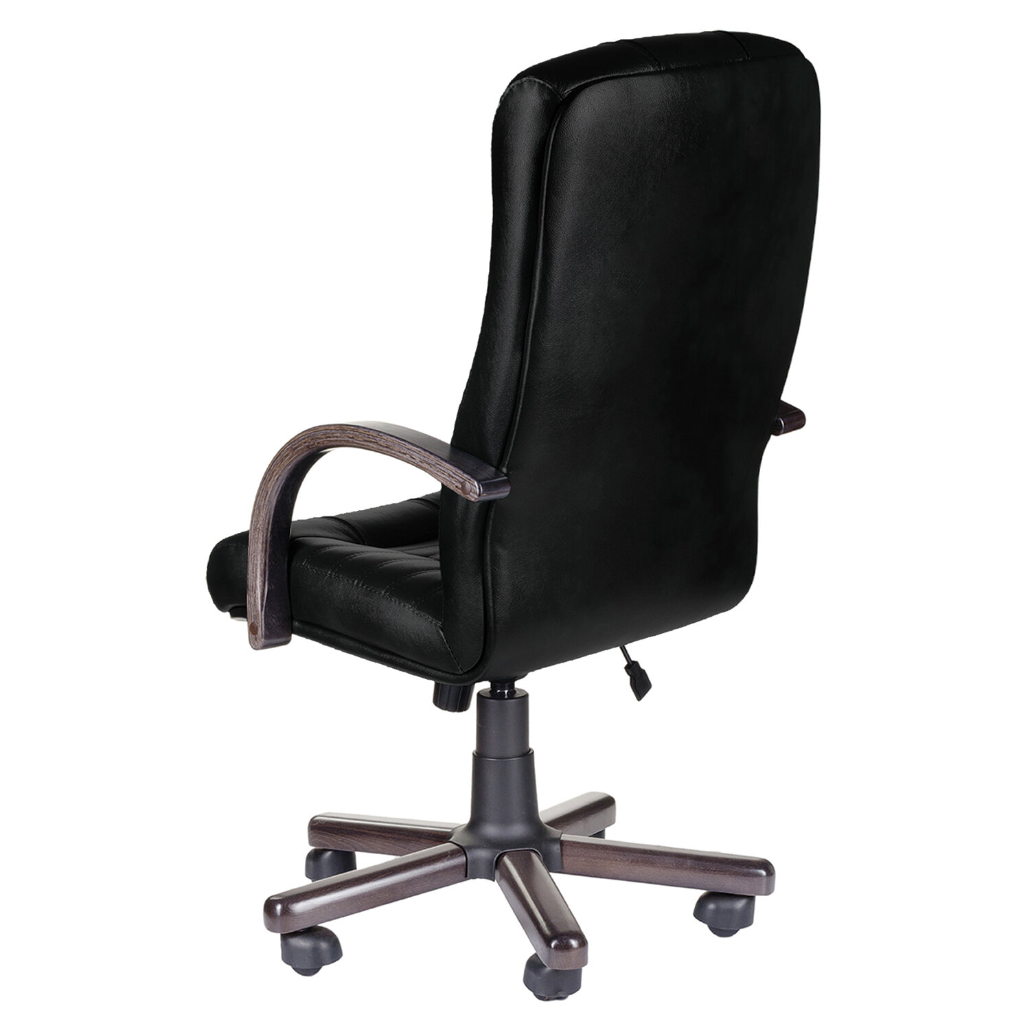 Отличительной особенностью данной модели является монолитный каркас, формирующий жесткость всей конструкции и эргономику спинки.На лицевой части всех рабочих поверхностей используется натуральная кожа. На нерабочих поверхностях применяется материал-компаньон - экокожа.Подлокотники выполнены из натуральной древесины "под орех".Пластиковое пятилучие способно выдержать нагрузку до 120 кг.Модель оснащена механизмом качания "Top-Gun" с регулировкой под вес и возможностью фиксации в рабочем положении.Наиболее доступная модель кресла руководителя в среднем классе.