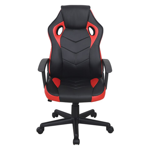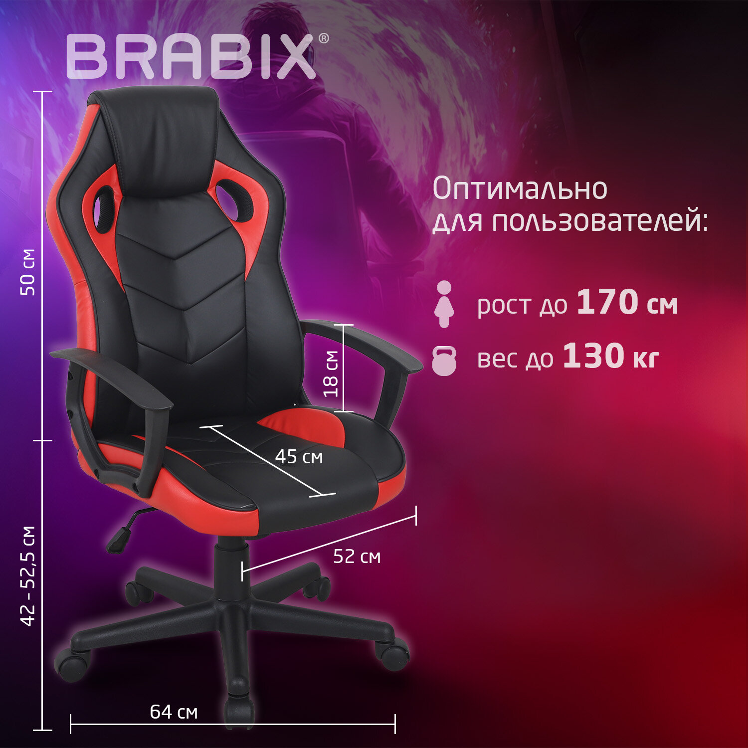 Кресло компьютерное BRABIX "Fighter GM-008", экокожа, черное/красное, 532506