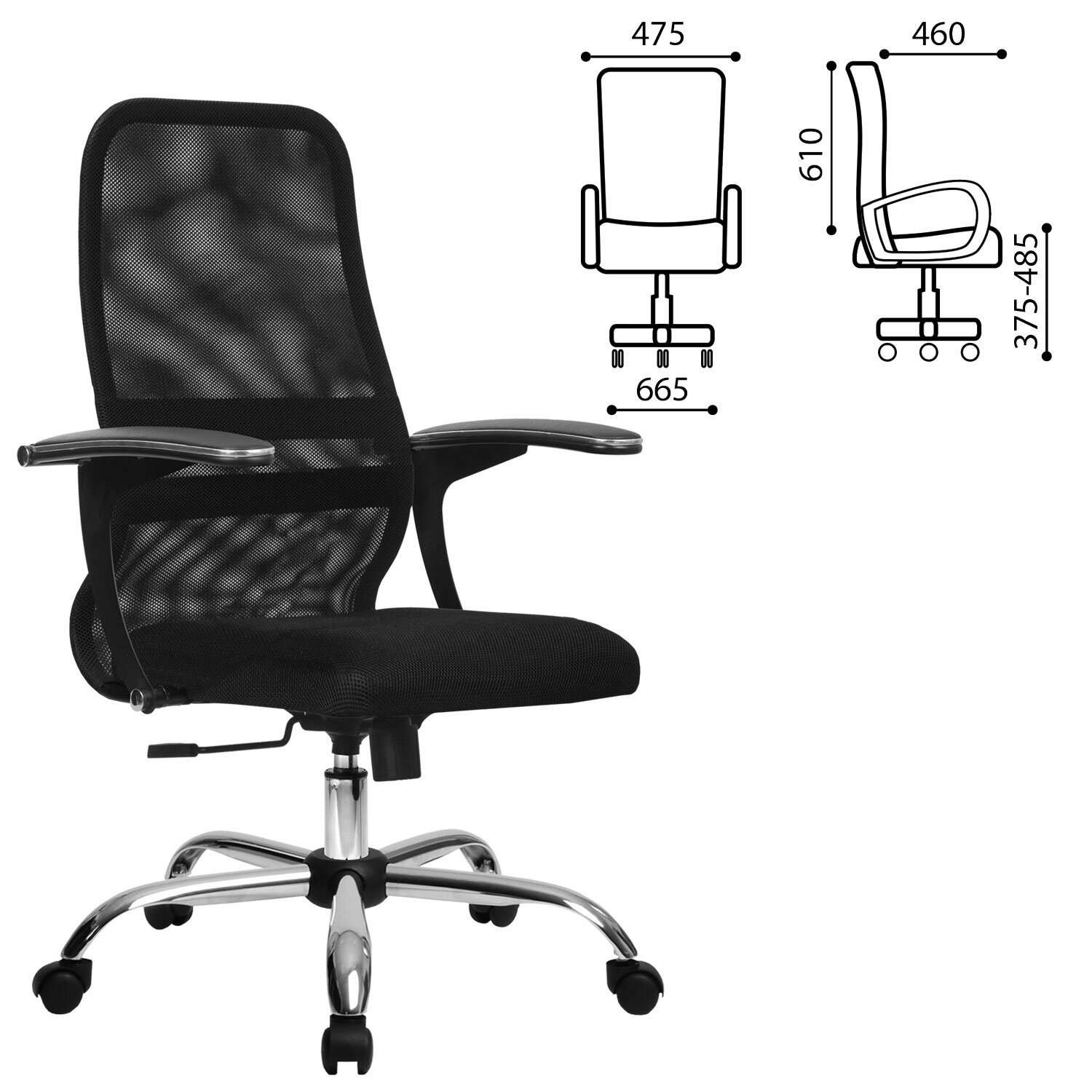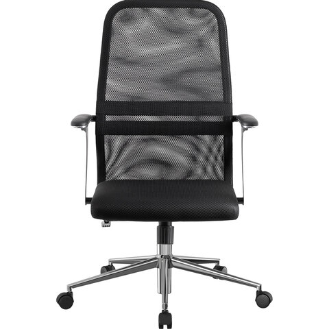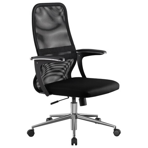 Кресло МЕТТА "SU-C-8-Т" хром, с подлокотниками, ткань-сетка, сиденье мягкое, черное
