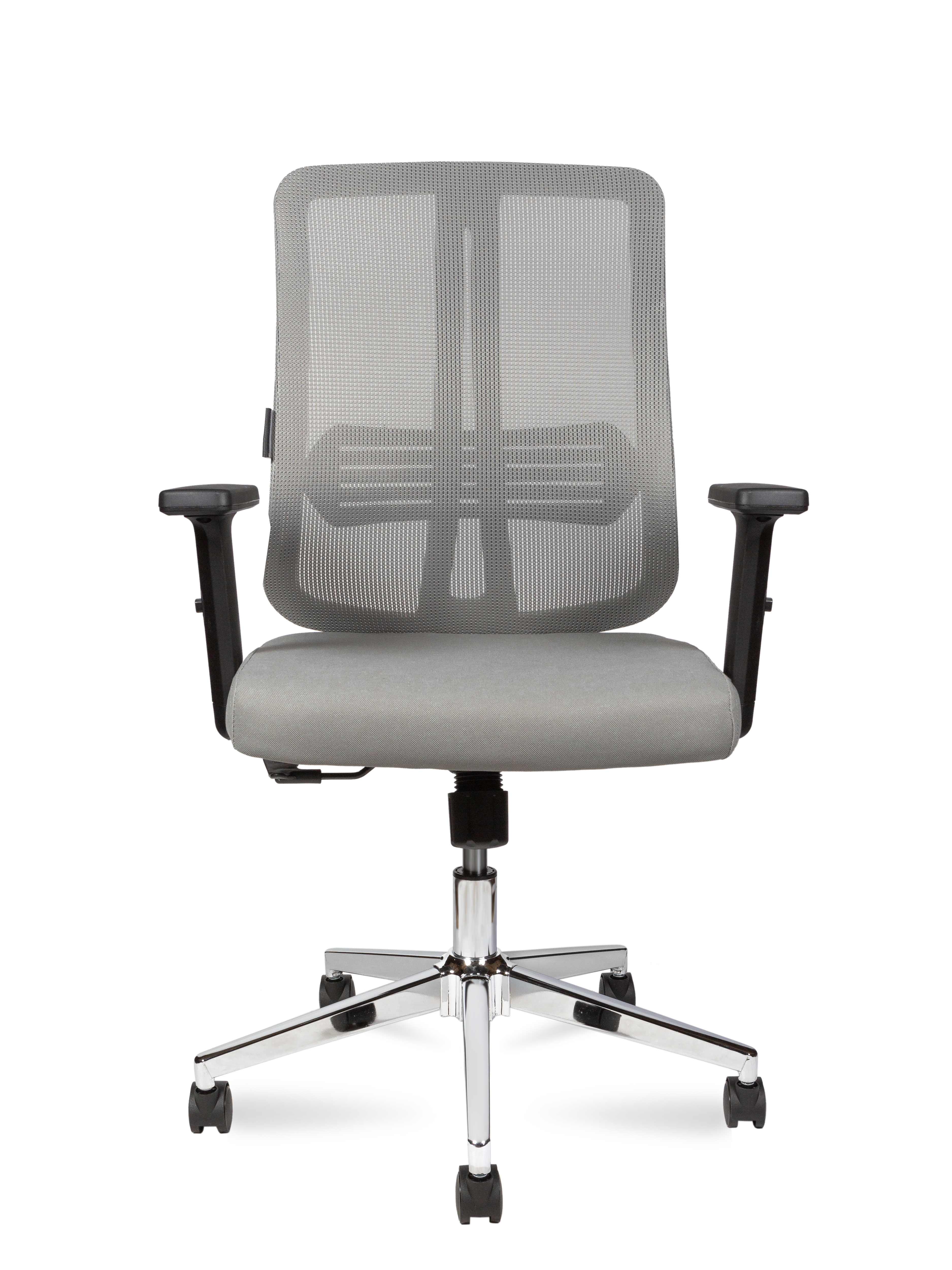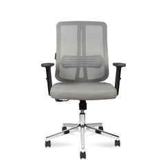 Офисное кресло со средней спинкой, спинка сетка, сиденье формованное ПУ, пластиковый подлокотник 2 D (регулировка по высоте в одной плоскости), механизм Топ-Ган с фиксацией в одном положении, Хромированная база, ролики ПУ. Максимальная нагрузка до 120 кг. Гарантия один год.