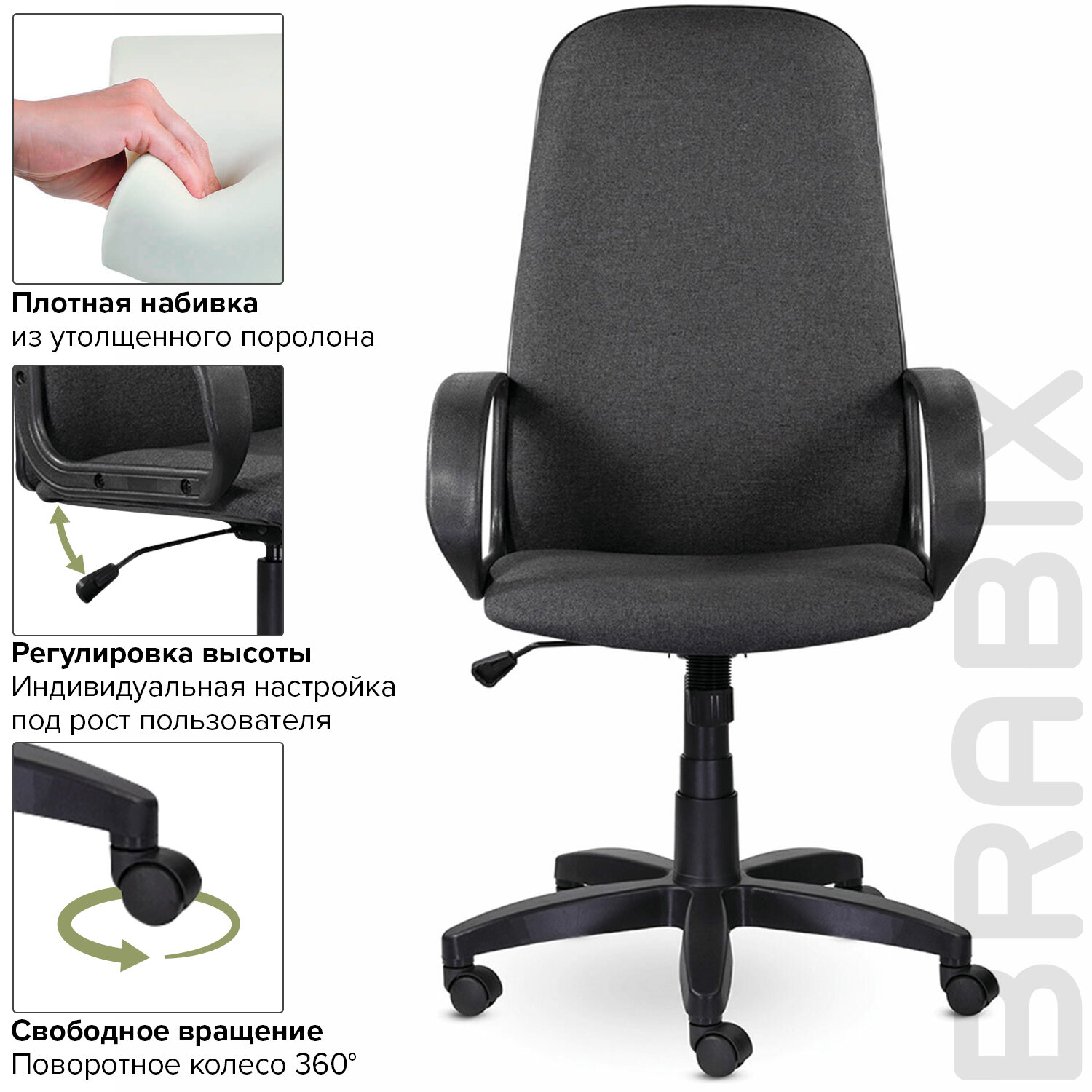 Кресло офисное BRABIX "Praktik EX-279", ткань/кожзам, серое, 532018