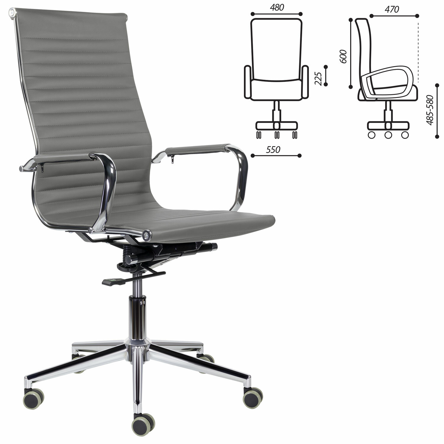 Кресло офисное BRABIX PREMIUM "Intense EX-531", экокожа, хром, темно-серое, 532542
