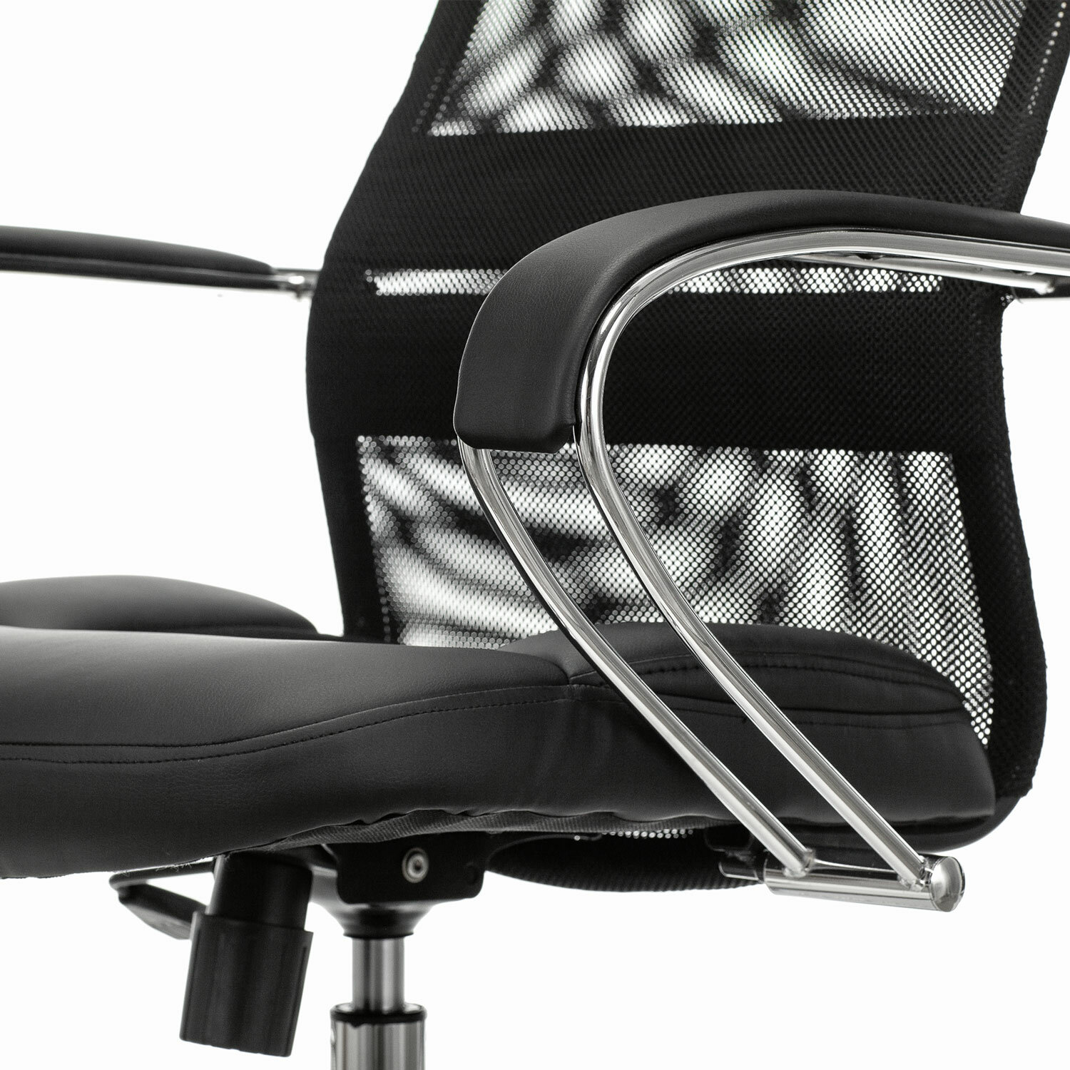 Кресло офисное BRABIX PREMIUM "Stalker EX-608 CH", хром, ткань-сетка/кожзам, черное, 532091