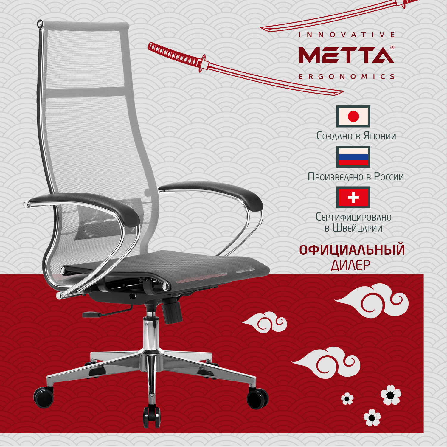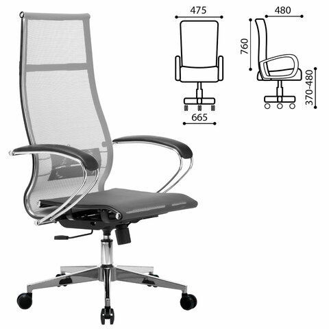 Кресло офисное МЕТТА "К-7" хром, прочная сетка, сиденье и спинка регулируемые, серое
