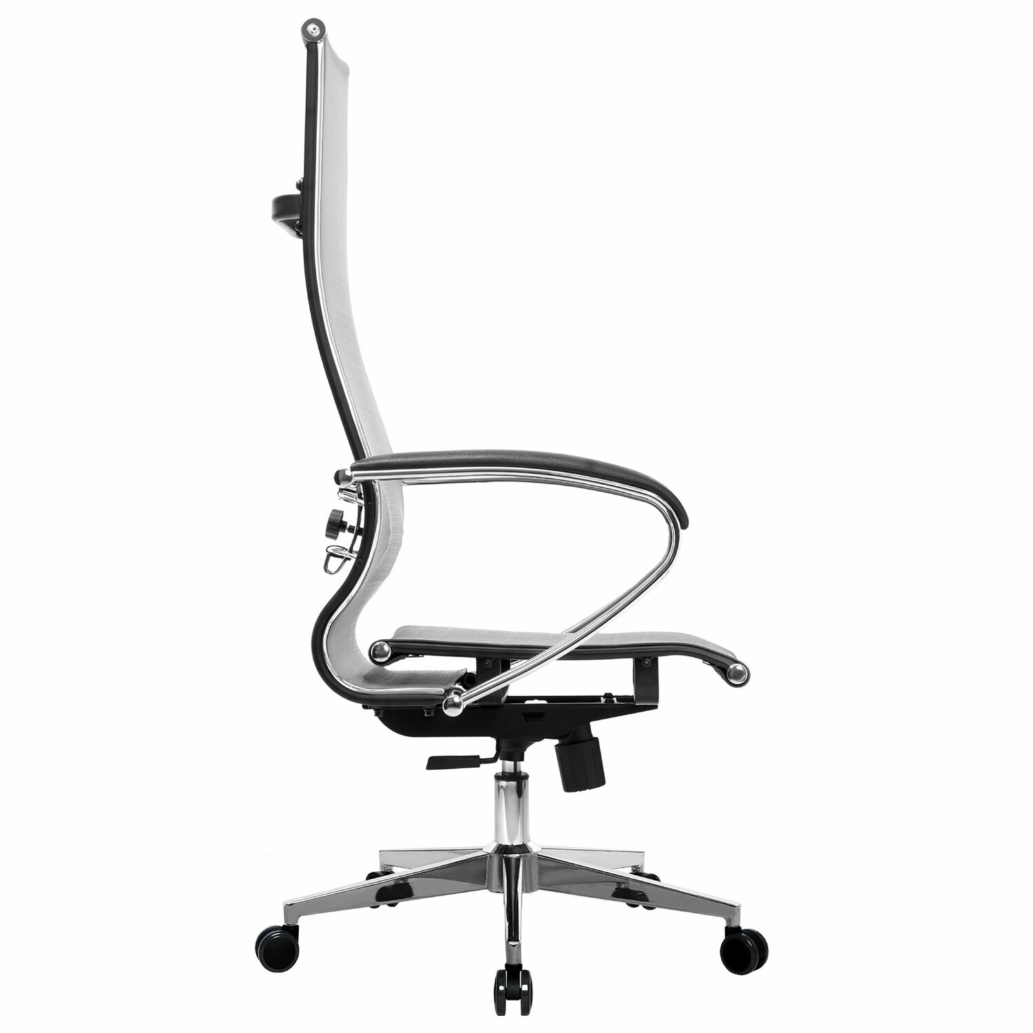 Сверхпрочный стальной каркас.Спинка высокая, эргономичной формы с ярко выраженной поясничной поддержкой. Эргогиб, как у кресел SAMURAI.Спинка имеет стальной регулируемый поясничный подпор с ремнем из перфорированной экокожи Extra. Уникальная форма передней части сиденья исключает сдавливание сосудов ног, сохраняя ощущение легкости в ногах.Двухзонная регулировка жесткости сиденья позволяет достичь максимального удобства, а также при необходимости настроить угол наклона сиденья за счет разного натяжения передней и задней зоны.Регулировка глубины сиденья за счет перемещения места крепления сидения (450-480 мм).Обивка из прочной износоустойчивой "дышащей" сетчатой ткани.Подлокотники стальные классические покрытые зеркальным хромом, с мягкими накладками из экокожи.Пятилучие современного дизайна с металлическим хромированием.Колеса-ролики имеют полиуретановое покрытие, обеспечивающее бесшумный ход и защиту пола от повреждений.Модель оснащена синхромеханизмом качания M20 (S 1.0) с регулировкой под вес и возможностью фиксации в рабочем положении.Современный дизайн и максимальный комфорт по доступной цене.
