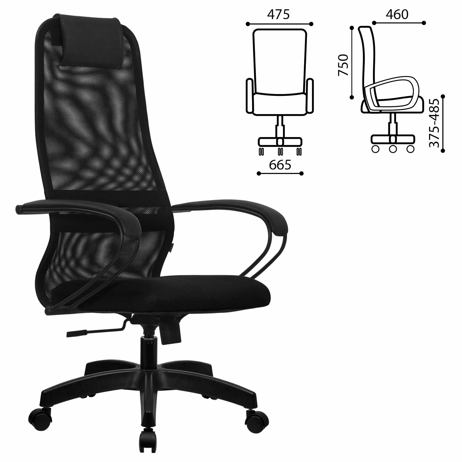 Кресло офисное МЕТТА "SU-B-8" пластик, ткань-сетка, сиденье мягкое, черное