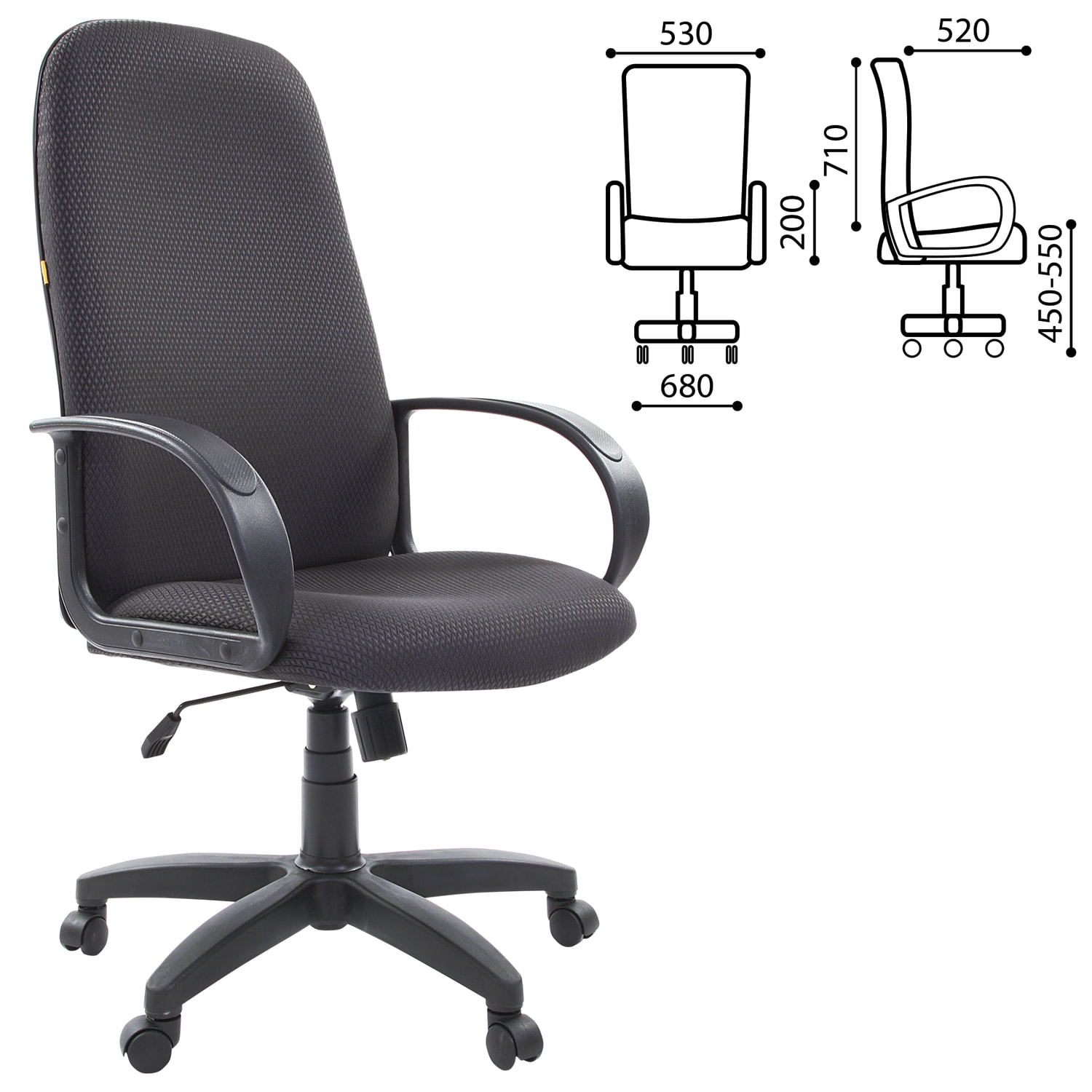 Кресло офисное СН 279, высокая спинка, с подлокотниками, черное-серое, 1138104