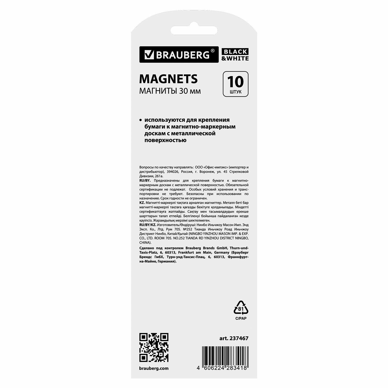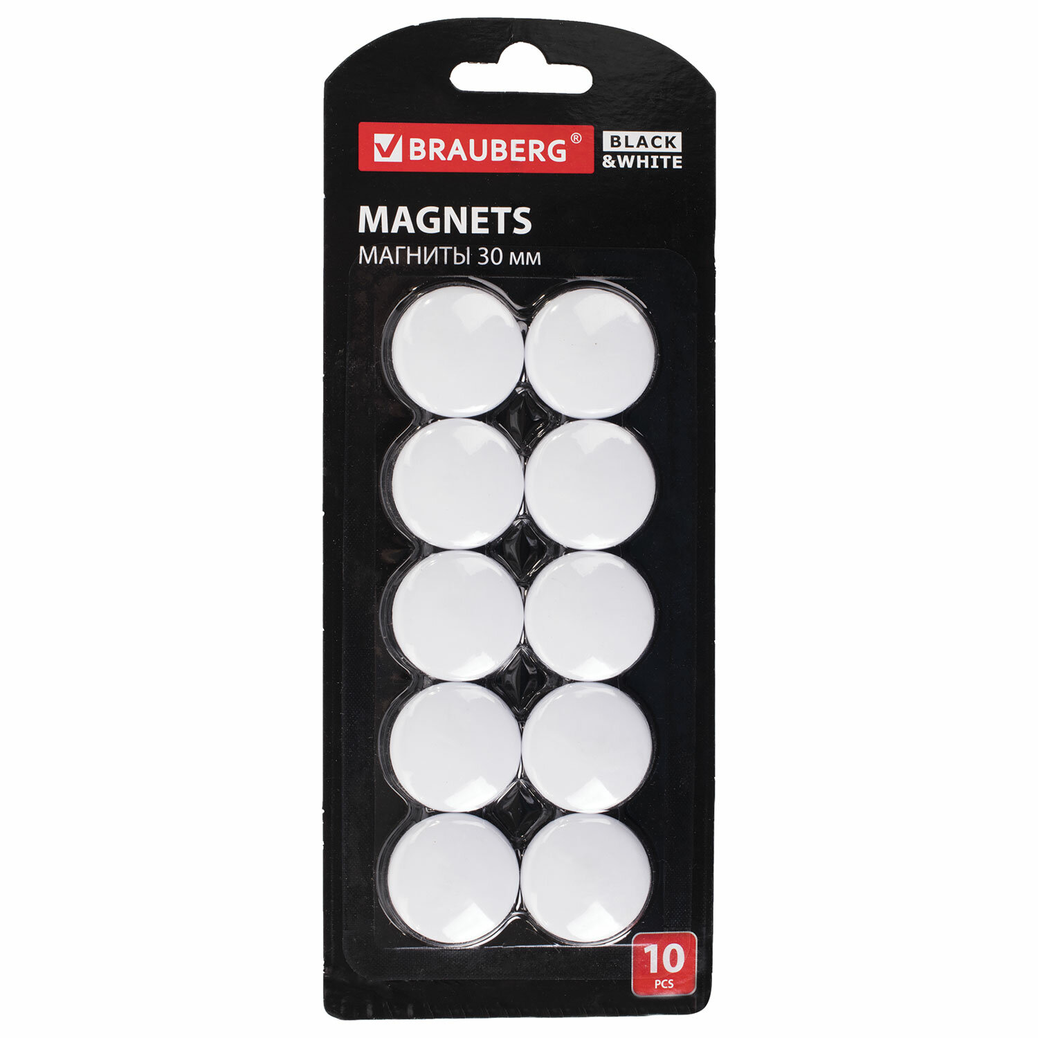 Магниты BRAUBERG "BLACK&WHITE" УСИЛЕННЫЕ 30 мм, НАБОР 10 шт., белые, 237467