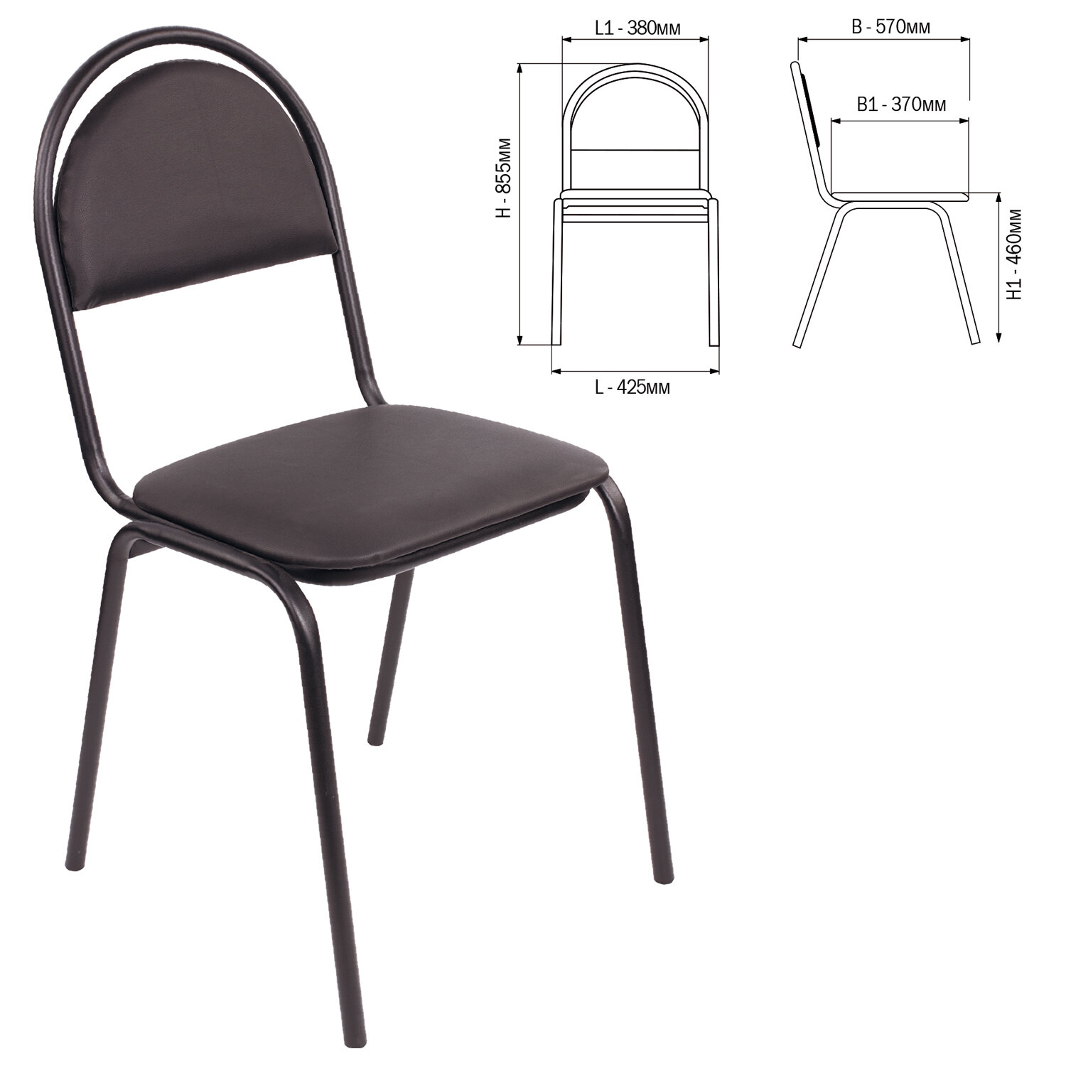 Материал обивки кожзам – практичный и неприхотливый в уходе материал.Каркас сварной из труб круглого сечения диаметром 22 мм, толщиной стенки 1,2 мм.Допустимая нагрузка на стул – до 110 кг.Данный стул относится к топ-ассортименту, его выбрали тысячи пользователей.