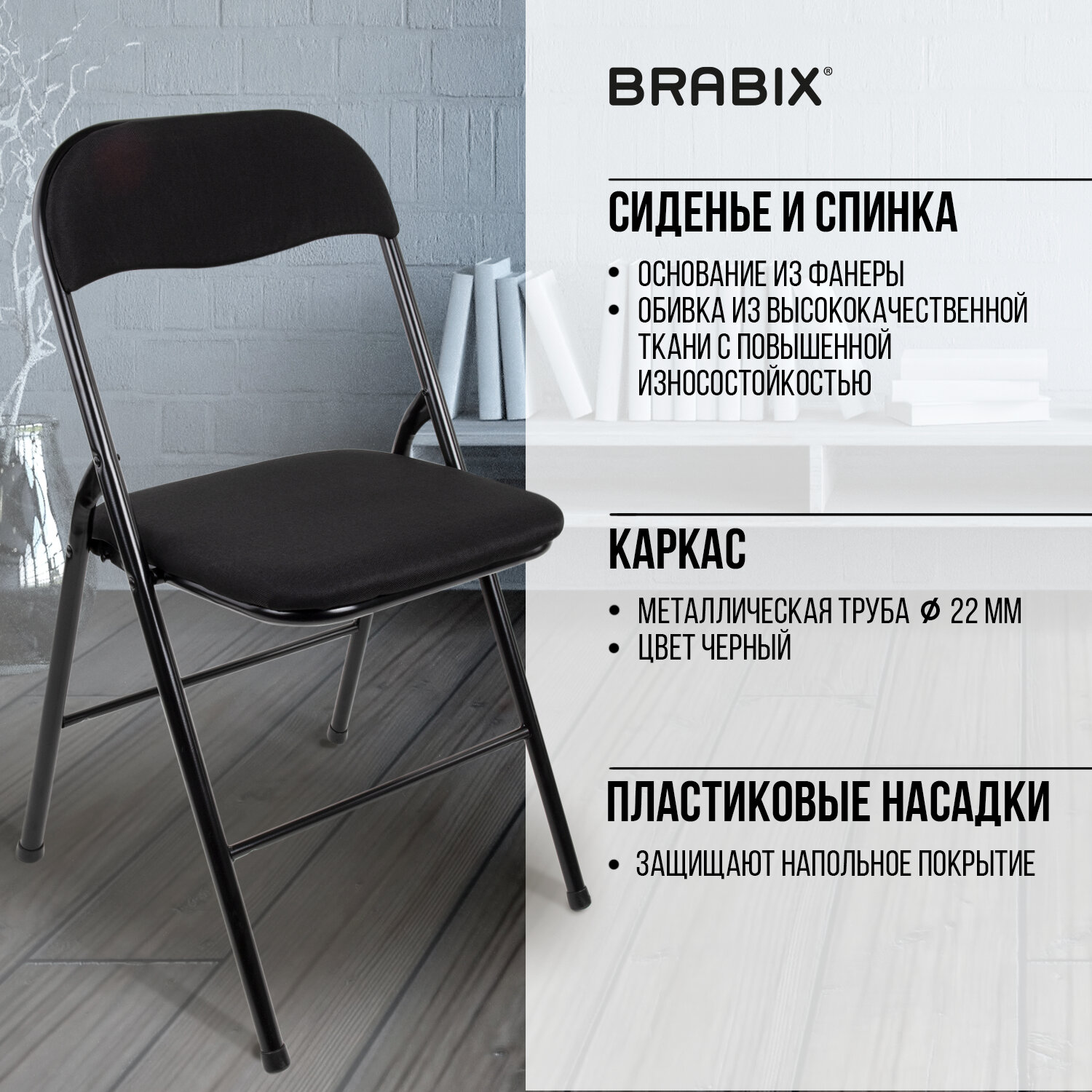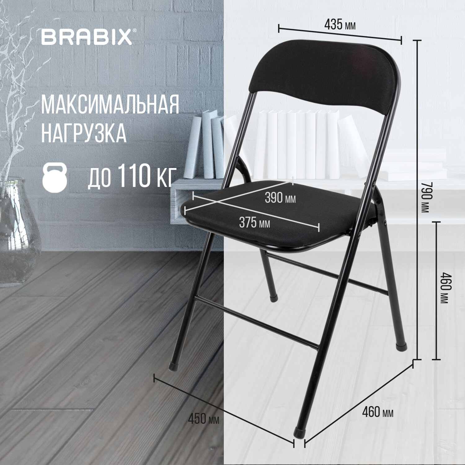 Стул складной BRABIX "Golf CF-007", чёрный каркас, чёрная ткань, 532892
