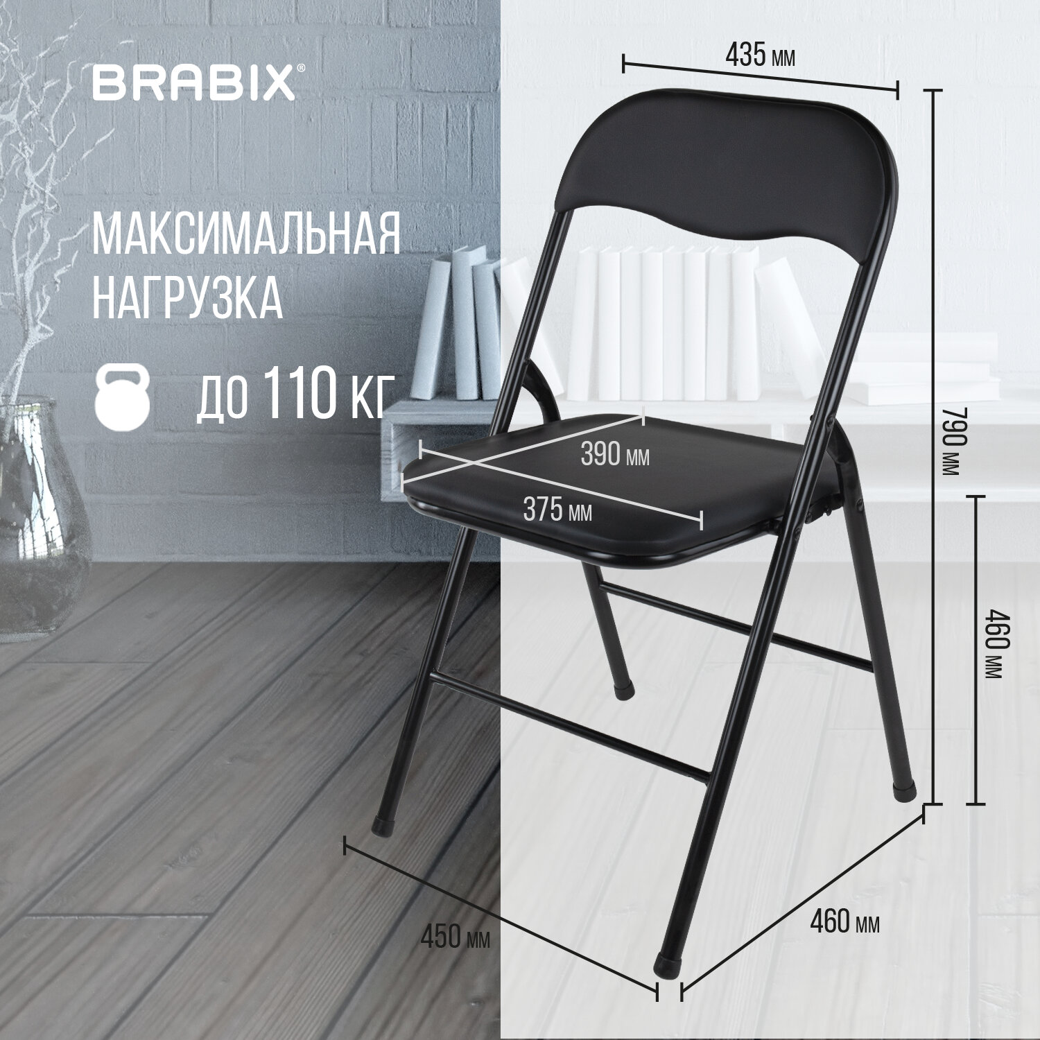 Стул складной BRABIX "Golf CF-007", черный каркас, кожзам черный, 531565