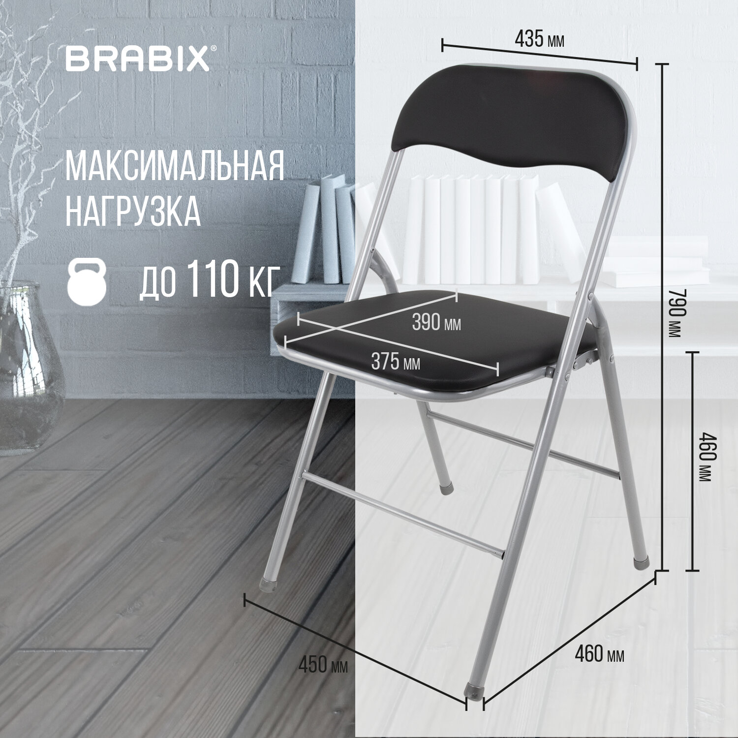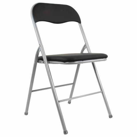 Стул складной BRABIX "Golf CF-007", серебристый каркас, кожзам чёрный, 532891