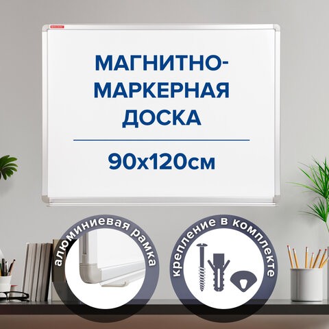 Доска магнитно-маркерная 90х120 см, улучшенная алюминиевая рамка, BRAUBERG Premium, 231715