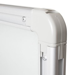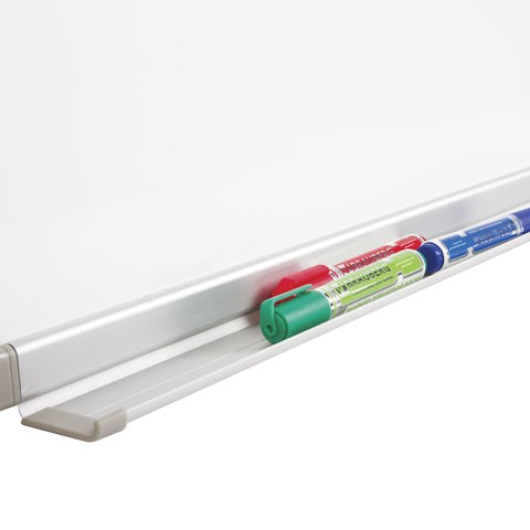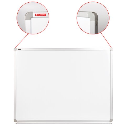 Лаковое покрытие предназначено для письма специальными маркерами для белой доски, а металлическая поверхность позволяет размещать информацию при помощи магнитов. Доска размером 90х120 см имеет укрепленные пластиковые уголки. Профиль придает изделию дополнительную прочность и современный стильный внешний вид. Полочка для аксессуаров и элементы крепления входят в комплект. Для защиты рабочей поверхности доски на нее нанесена защитная пленка. Перед началом работы необходимо ее удалить. При должном уходе за рабочей поверхностью доски при помощи чистящей жидкости-спрея и стирателей BRAUBERG поверхность магнитно-маркерной доски прослужит более 10 лет.