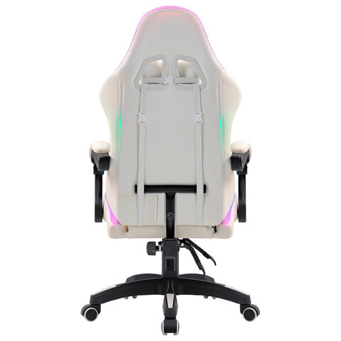 Кресло компьютерное DEFENDER "Energy", 2 подушки, RGB-подсветка, экокожа, белое, 64557